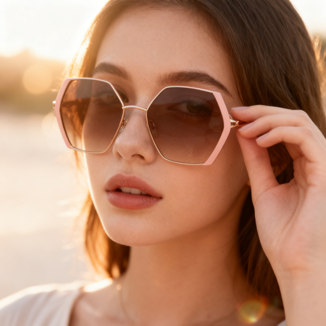 Geometrijska elegancija: Oversized heksagonalni oblik koji laska svakom obliku lica.